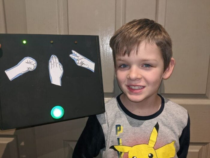 Zack made his own arcade rock-paper-scissors game using the learning from his regular classes.