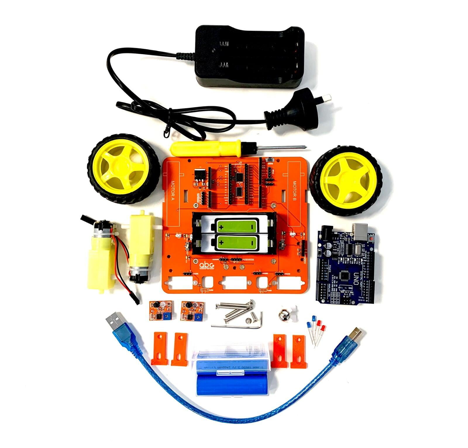 This is the first course in the series where students learn all the basics and foundation of robotics and coding including dc geared motors, sensors. development boards, circuits and troubleshooting.